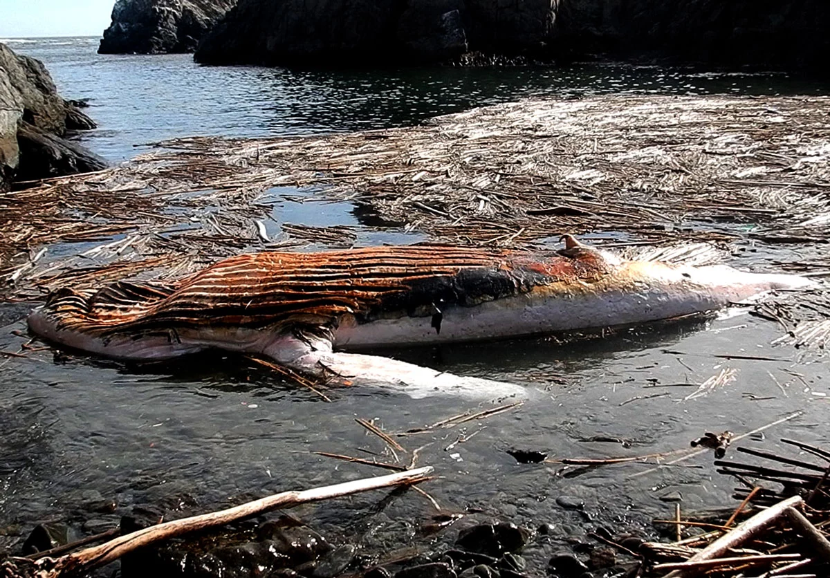 “El ejemplar fue identificado como una ballena jorobada subadulta, de aproximadamente 7.6 m de longitud total y de sexo macho. Presentaba la aleta caudal amarrada con un cabo de polietileno verde (de aproximadamente 12 a 14 mm de diámetro), lo que sugiere que habría sido remolcado previamente desde otra localización”, informó Imarpe.