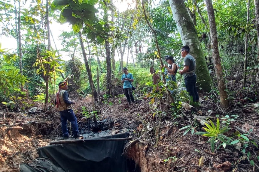 Marcos Orellana, relator de la ONU sobre Desechos Tóxicos y Derechos Humanos, acompañado de monitores ambientales, recorrió Iscamaño, Titiyacu y Nuevo Andoas mientras escuchaba los testimonios de las comunidades, corroborando de primera mano los daños ambientales que denuncian las comunidades. En Iscamaño, por ejemplo, con solo remover superficialmente la tierra se pudo evidenciar la presencia de petróleo.