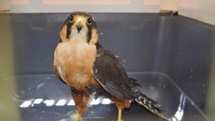 Un halcón perdiguero o aplomado (Falco femoralis), visiblemente herido, fue rescatado por personal del Servicio Nacional Forestal y de Fauna Silvestre (Serfor) en coordinación con la Policía de Protección de Medio Ambiente, en Challhua, Huaraz.