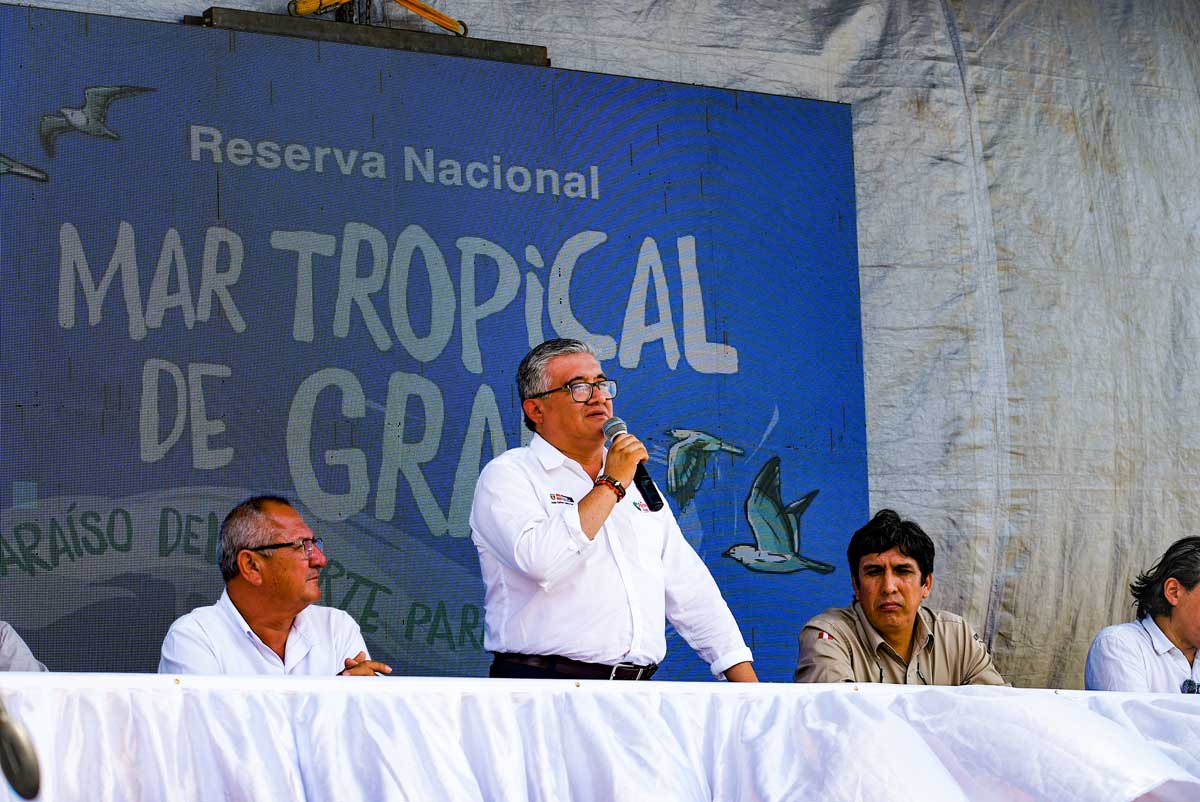 El titular del Ministerio del Ambiente (Minam) también destacó que esta nueva reserva nacional permitirá conservar una muestra representativa de los ecosistemas del Mar Tropical del Perú y la zona de transición tropical-templado, lo cual contribuirá al cumplimiento como país de compromisos internacionales para la protección de nuestro ecosistema marino.