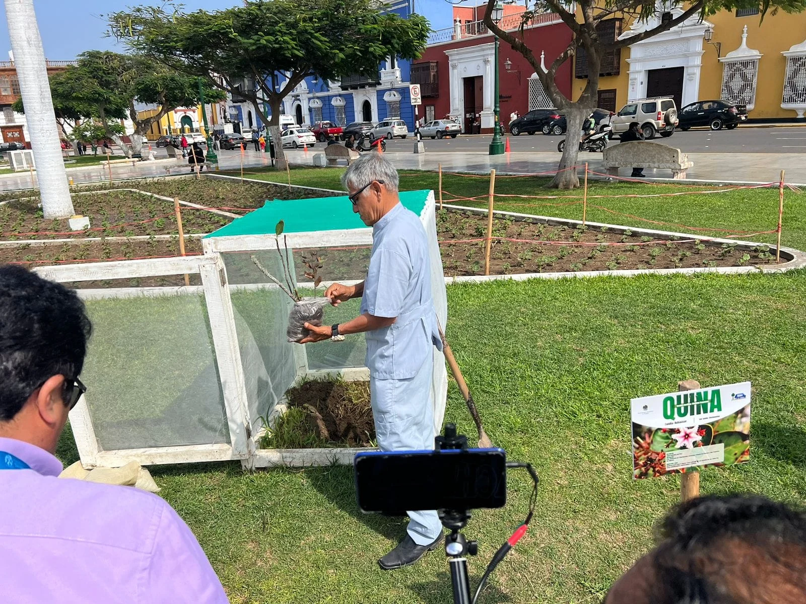 “Mi sueño es plantar un árbol de la quina en todas plazas públicas del Perú”, nos dice a pocos días de sembrar un ejemplar más en la plaza de Trujillo, lugar donde espera tener hasta ocho especies de quina para batir un récord Guinness. “Este año habíamos llegado a tener estas ocho especies, pero una planta fue arranchada y otra fue robada”, cuenta el investigador y tecnólogo médico de 67 años.