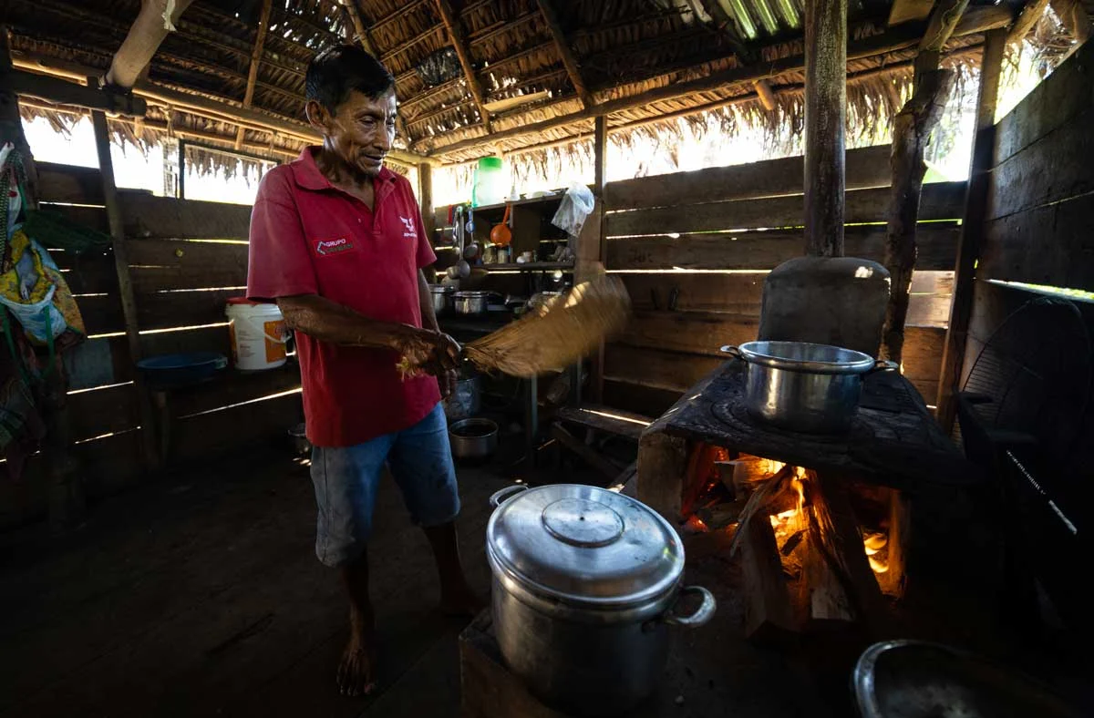 Antes de las seis de la mañana, Eleodoro Ahuanari y Olmedo Capinoa, el actual y el expresidente comunal de Santa María de Loreto, respectivamente, se preparan para su rutina diaria. Primero navegan en su pequeña embarcación, conocida en esta parte de la Amazonía como peque peque –por el peculiar sonido que emite su motor- hasta cierta parte del río. Olmedo, pescador de oficio, sumerge sus redes en el agua a la espera de atrapar el alimento para su familia.