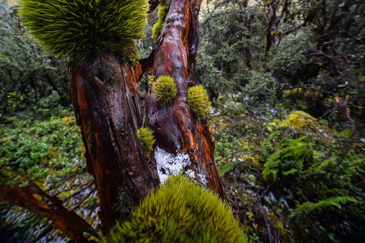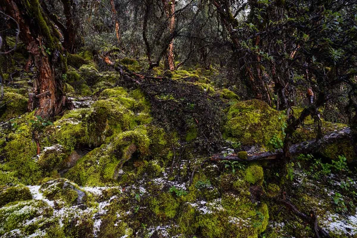 Son árboles endémicos de los Andes peruanos que crecen aferrados a las laderas. Debajo de sus ramas se forman colchones de musgo o “colchones de agua”, como los llama Santosa, donde brotan hongos, plantas aromáticas y raíces comestibles. Entre sus troncos retorcidos, anidan pájaros, como el cuculí, el colibrí y la perdiz.