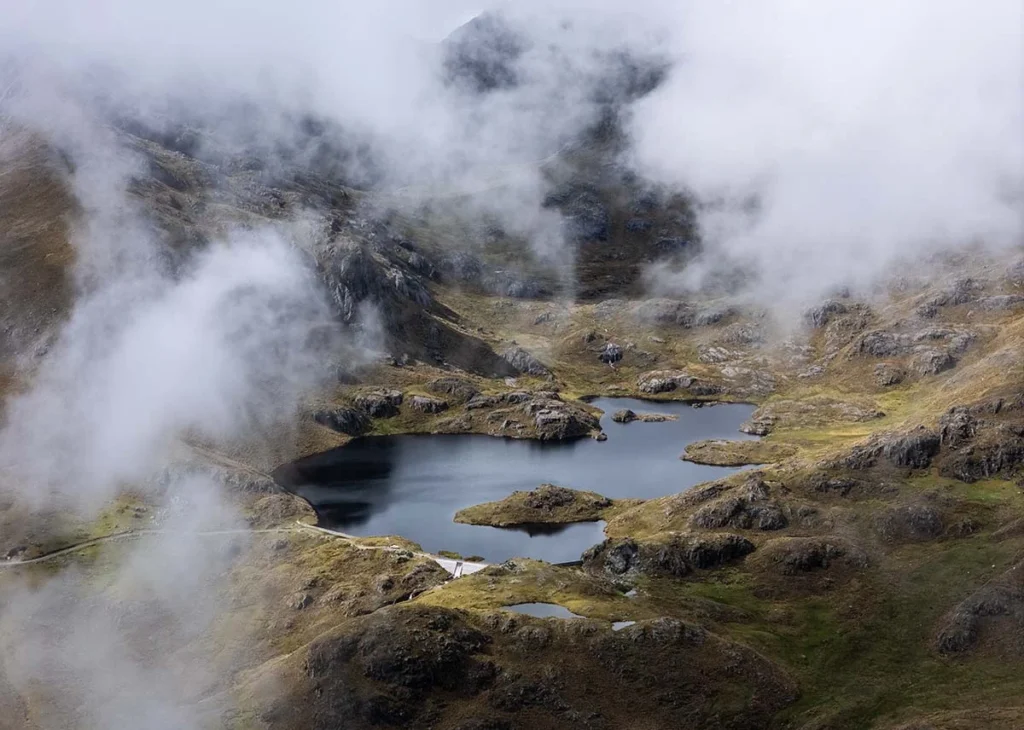 Rontoccocha está en la sierra sur del país, a más de 4 mil metros sobre el nivel del mar, en una geografía que Santosa describe como “un papel arrugado”: cerros elevados con rocas sueltas, pendientes que se doblan sobre sí mismas. Pero dentro de ese paisaje hay un ecosistema lleno de vida. “Tenemos nuestros bosques nativos, nuestras lagunas, nuestros ojos puquiales”.