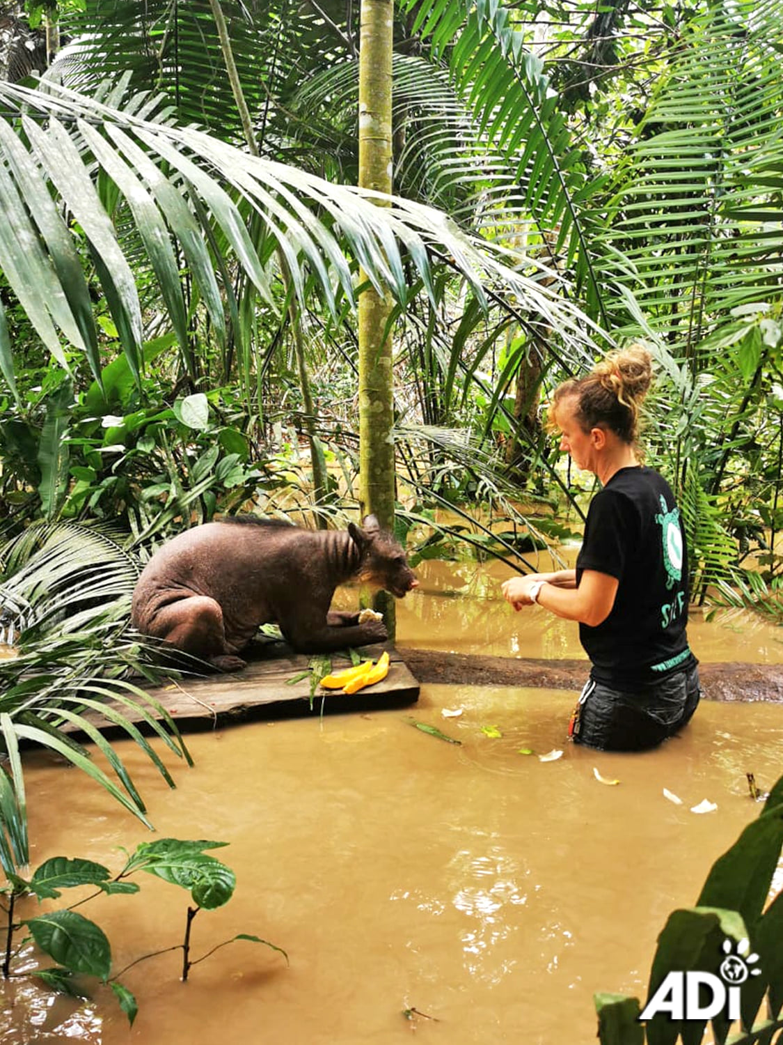 Actualmente, algunos miembros del personal se encuentran en la ciudad de Puerto Maldonado cuidando a Kira (perro de orejas cortas), tres monos nocturnos, un tití emperador, 8 periquitos, 5 guacamayos, así como dos crías de guacamayos y una cría de mono araña. Asimismo, detallan la continua construcción de plataformas temporales cada vez más elevadas para que los animales permanezcan secos y seguros.