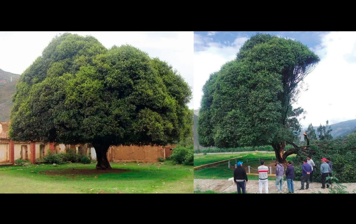 Ayer, un copioso árbol ubicado en el sector Malpaso, distrito de Tinco, provincia de Carhuaz (Áncash), y que por muchos años fue confundido con la quina, se partió en dos. Aunque las autoridades aún están evaluando la causa de este hecho, todo apunta a que se debió a causas naturales.