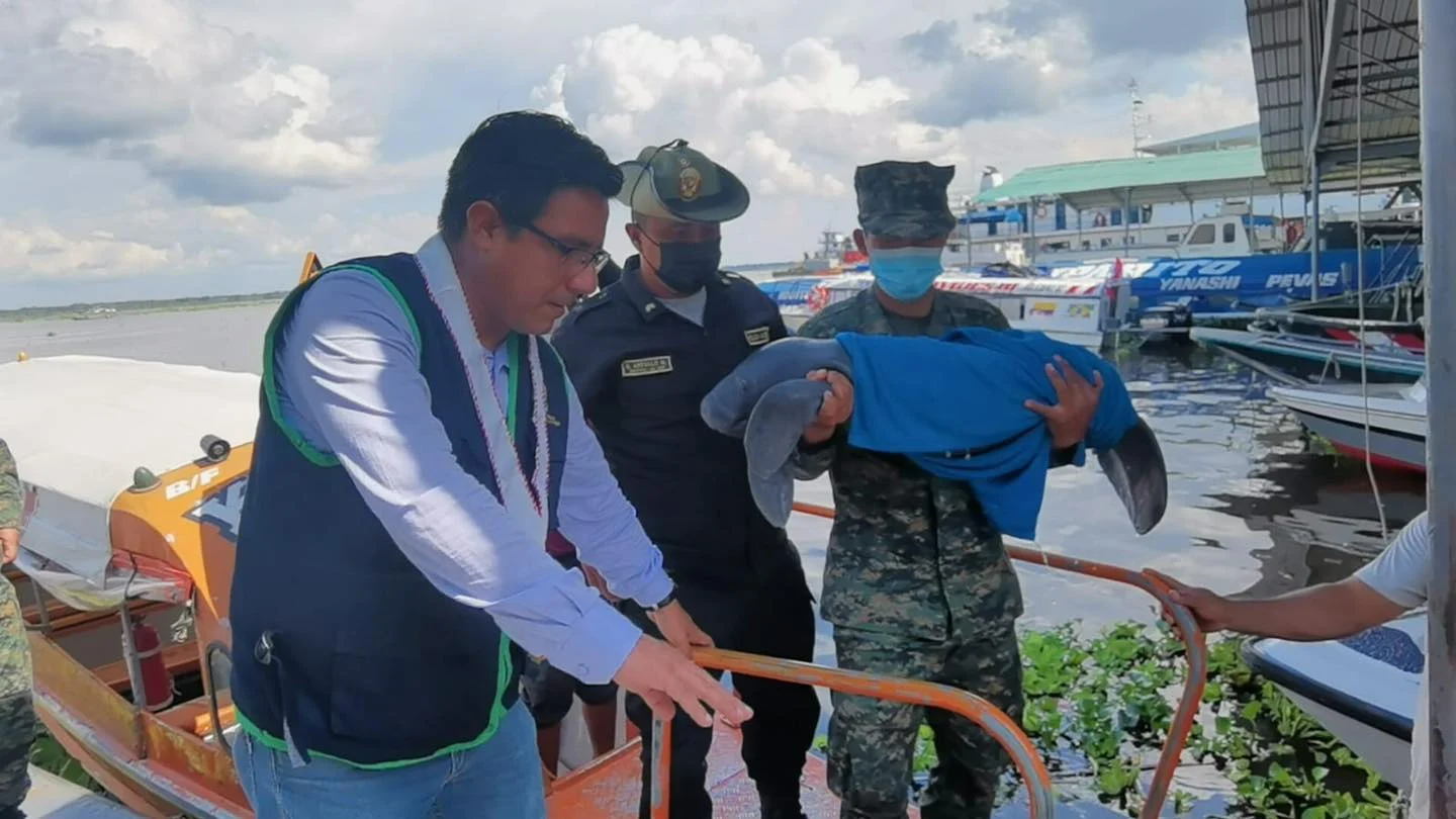 Rescatan manatí bebé que vivía atado de su cola en las orillas del río Amazonas