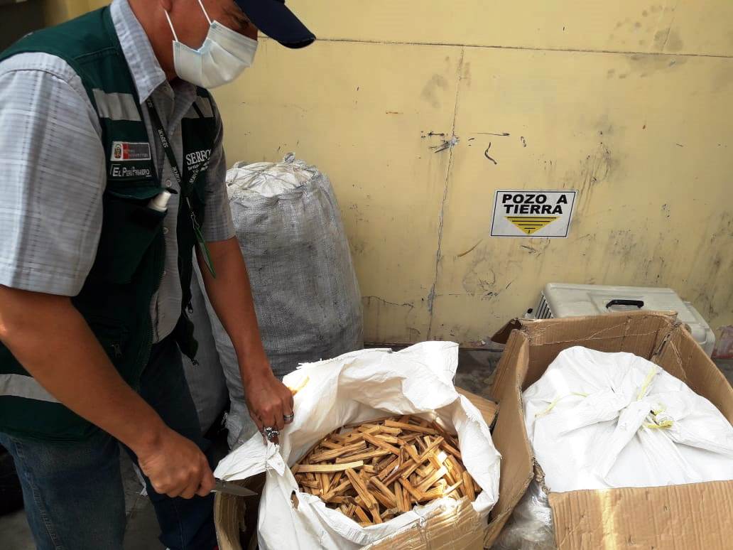 Piura: decomisan 95 kilogramos de palo santo ilegal en empresa de transporte de carga