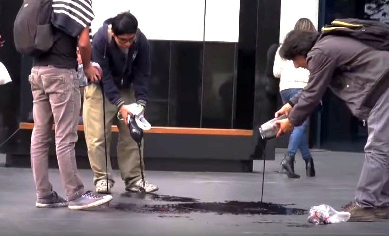 Jóvenes derraman petróleo frente a empresa Pluspetrol en protesta por contaminación en la Amazonía