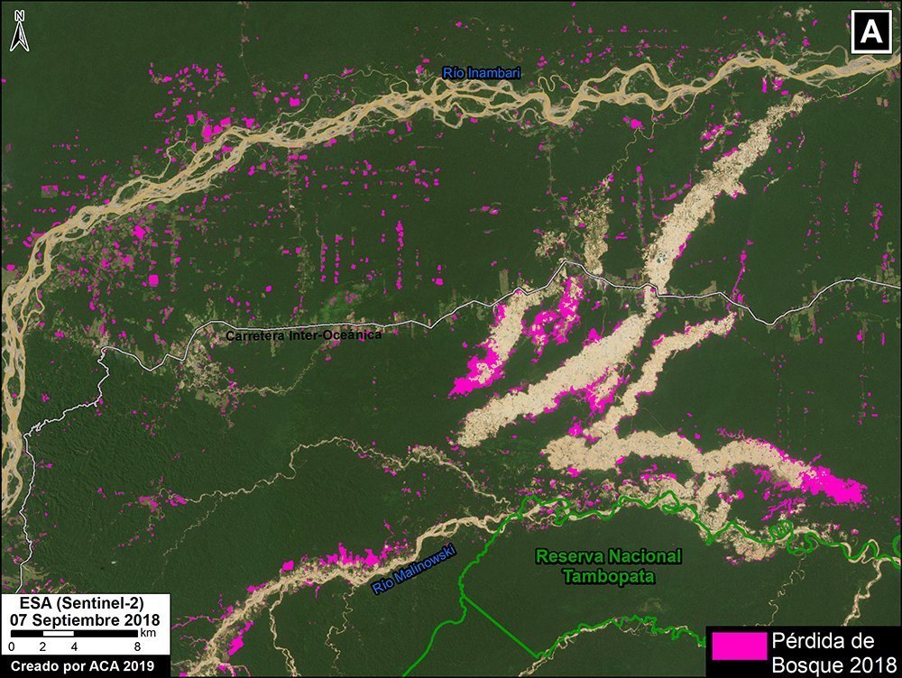 MAAP: La Pampa, Bahuaja Sonene e Iberia fueron los principales focos de deforestación en Madre de Dios el 2018