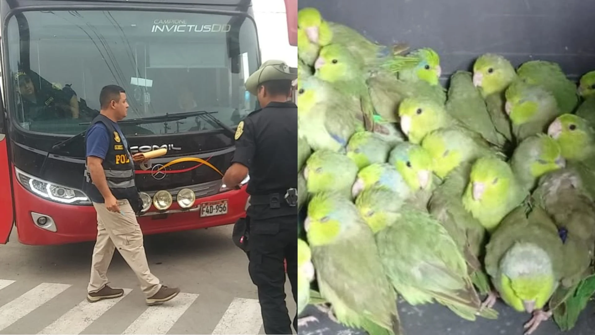 Recuperan 106 aves que eran transportadas en sacos de rafia en bus interprovincial