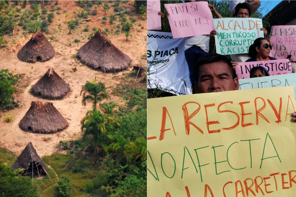 Ausbau der Interoceanica bei Iñapari, Madre de Dios, Peru. Sie wird den Pazifik mit dem Atlantik verbinden. Die Doerfer an der einst kaum befahrenen Staubstrasse werden von Landkaeufern und Spekulanten bedraengt