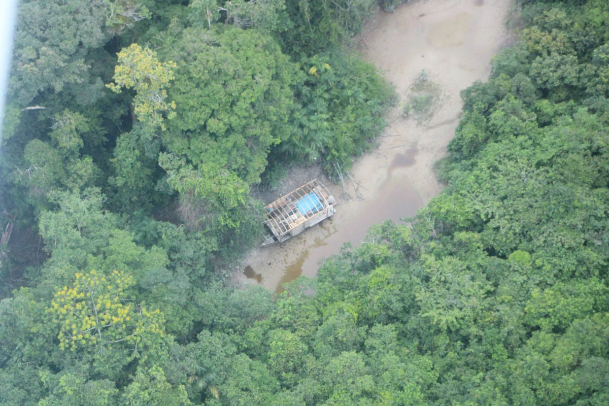 Equipo conformado por la Marina de Guerra y Fema Maynas, inspeccionando embarcación con equipos presuntamente destinados a la minería ilegal. Foto: Fema Maynas