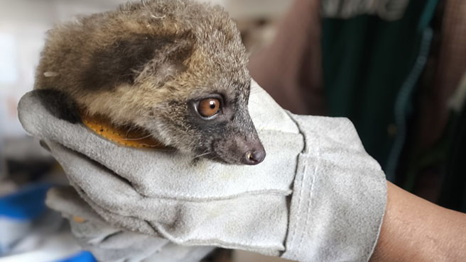 Tras una evaluación inicial, se confirmó que se trata de un ejemplar adulto de olingo de Allen (Bassaricyon alleni), el cual se encuentra en aparente buen estado de salud. Como medida preventiva, fue colocado en cuarentena y trasladado a un ambiente aislado, con el objetivo de brindarle las condiciones adecuadas de adaptabilidad antes de iniciar el tratamiento correspondiente para su eventual reinserción en su hábitat natural. Se presume que su origen es producto del tráfico ilegal, ya que esta especie no es nativa de la región.