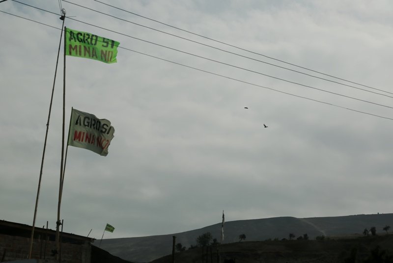 Durante las Fiestas Patrias, las casas del valle –como todo el Perú– lucieron banderas peruanas, pero también otras que representan la posición de la mayoría y cuyo escudo es una frase ya conocida por todos: “Agro sí. Mina no”. Cornejo narra que la población esperaba que Ollanta Humala diera una posición clara sobre el futuro de proyecto, pero se sintieron decepcionados. Horas después, muchos participaron en el desfile cívico y, portando banderas y polos blancos, marcharon lanzando arengas en contra el proyecto minero.