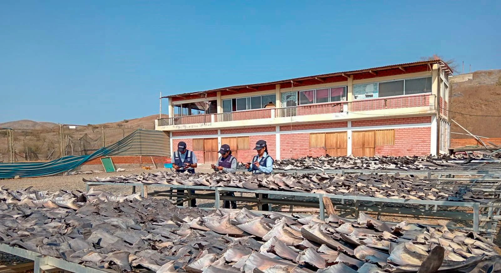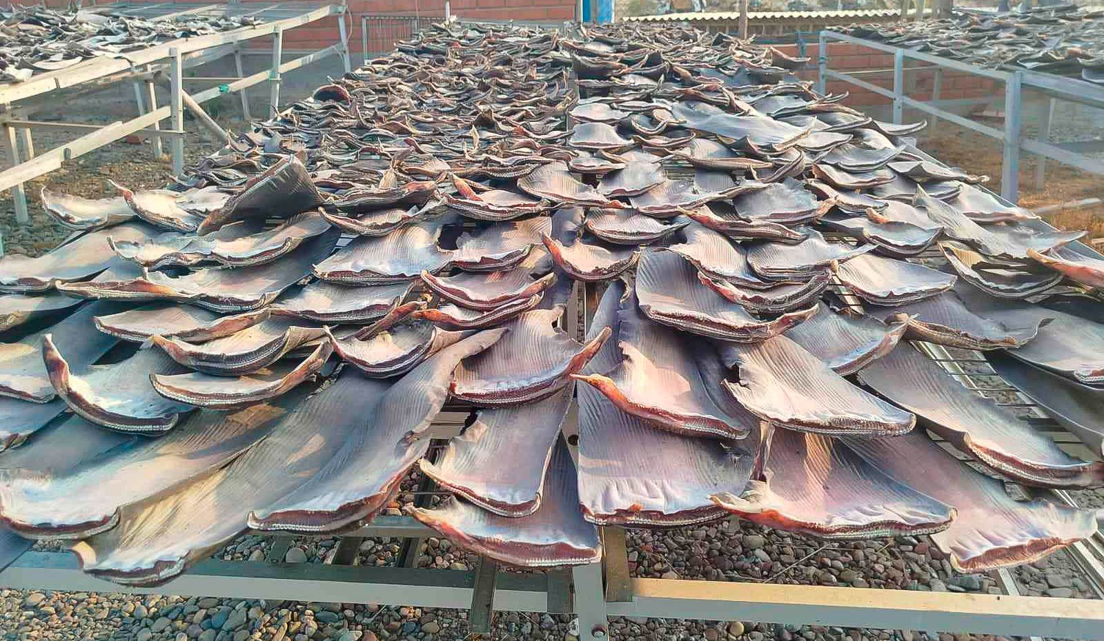 Las aletas encontradas en las instalaciones de la planta estaban siendo secadas a la intemperie. Foto: Fema Tumbes