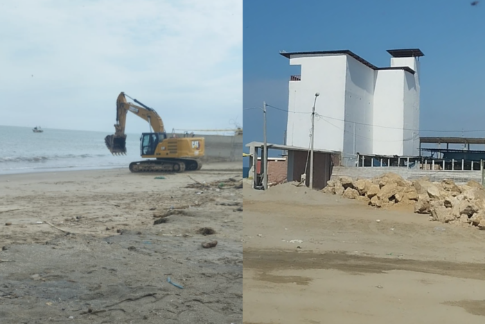 Hace diez días, un grupo de pescadores de la caleta de Zorritos denunció que el Gobierno Regional de Tumbes estaba movilizando maquinaria pesada para colocar grandes rocas en la zona de la playa. El traslado de estas rocas se habría hecho para proteger una construcción privada que sufrió daños ante los fuertes oleajes.