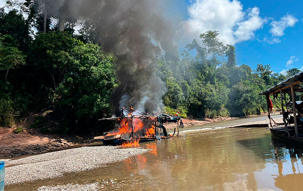 Tras la intervención, y al verificar que se trataba de actividades de minería ilegal, el representante de la FEMA dispuso la interdicción y destrucción de las dragas. Cabe destacar que cada una portaba tres generadores eléctricos, motobombas de succión, caracoles de fierro, chutes o plantas de clasificación internos y alfombras, así como siete bidones de combustible, los cuales que fueron incinerados de manera controlada para no afectar a la población cercana.