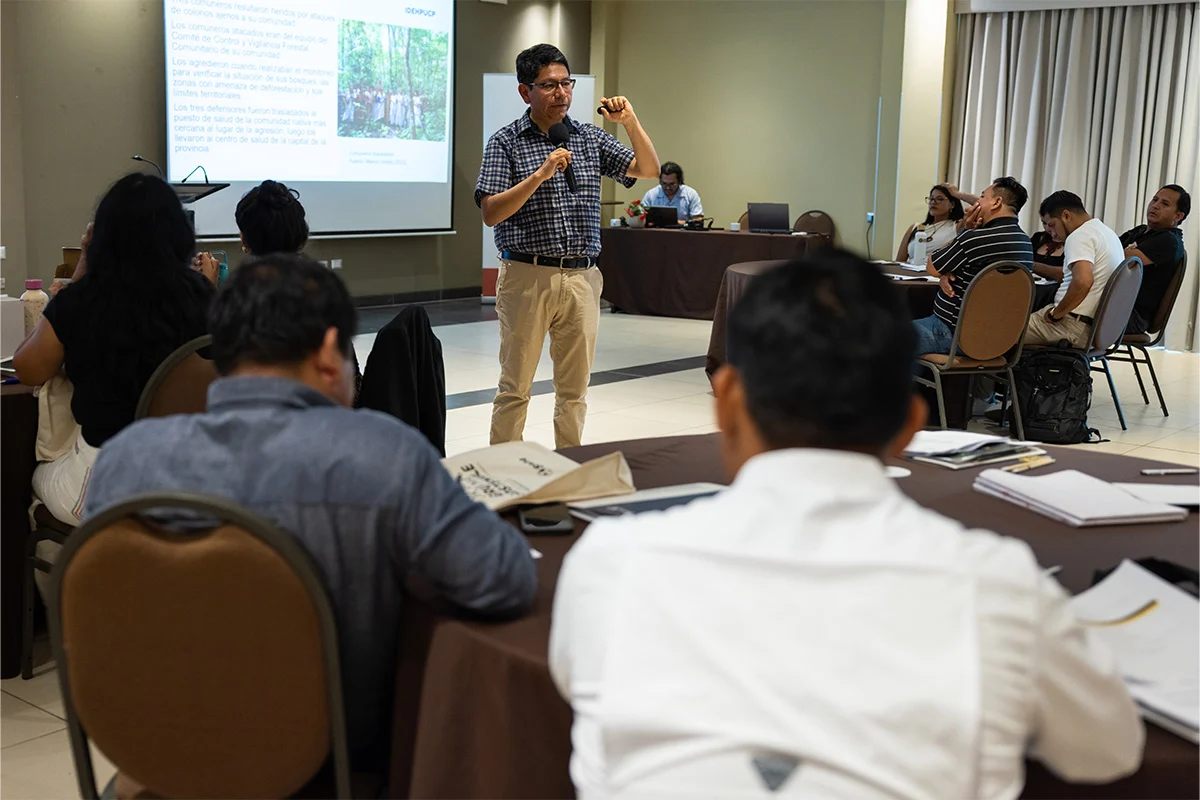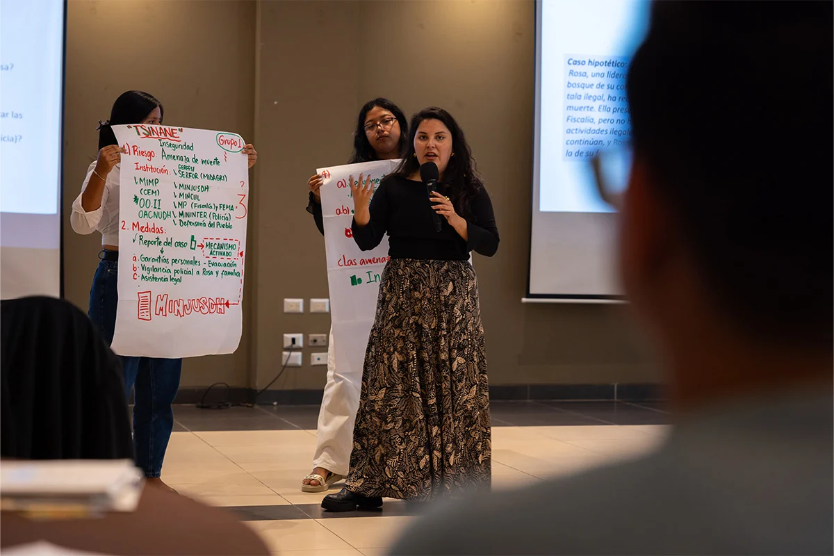 Los participantes recibieron herramientas legales y técnicas con enfoque intercultural para enfrentar las amenazas que afectan a las personas defensoras del ambiente, especialmente en contextos marcados por la expansión de actividades ilegales como la minería, el narcotráfico y la tala indiscriminada.