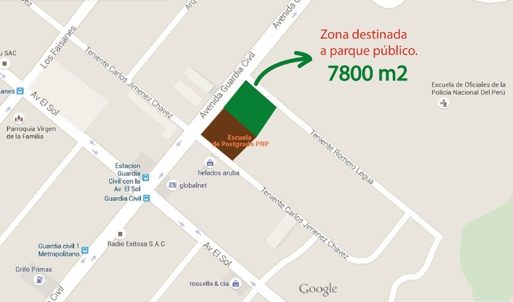 Asimismo, hizo referencia al convenio de permuta que se celebró entre la Municipalidad de Chorrillos y la PNP en 1993, en donde se “canjeaba” el parque por un terreno adyacente a la Escuela de Oficiales de la Policía, en las faldas del cerro Gramadal, pese a que el parque era “inalienable, inembargable e imprescriptible”.