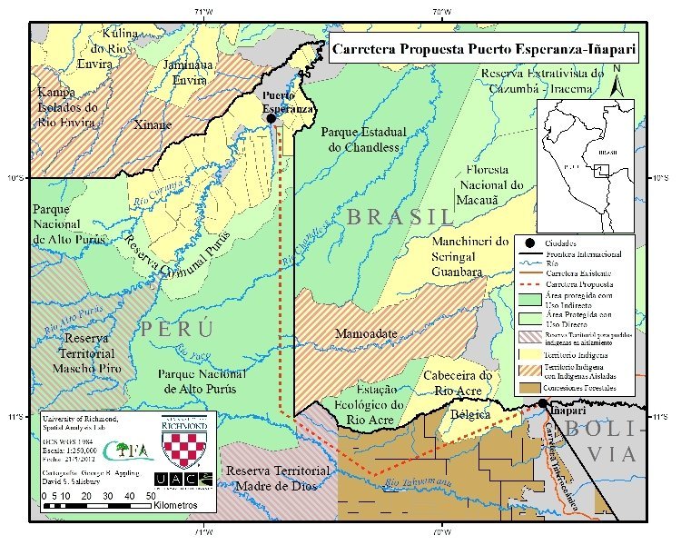 Debido a esta situación, surgieron diversas propuestas para solucionar este problema. Entre ellas, la construcción de una carretera que una las provincias de Purús (Ucayali) y Tahuamanu (Madre de Dios). Sin embargo, dicha iniciativa fue rechazada por organismos como el Ministerio de Cultura, Ministerio del Ambiente, Defensoría del Pueblo, organizaciones indígenas, incluso Naciones Unidas, porque la construcción de dicha vía afectaría no sólo a las áreas protegidas cercanas, sino también a los territorios habitados por pueblos indígenas en aislamiento.