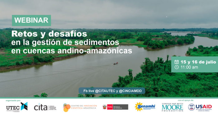 El Centro de Investigación y Tecnología del Agua de UTEC, el Servicio Nacional de Meteorología e Hidrología del Perú (Senamhi) y el Centro de Innovación Científica Amazónica (CINCIA) realizarán el webinar Retos y desafíos en la gestión de sedimentos en cuencas andino-amazónicas.